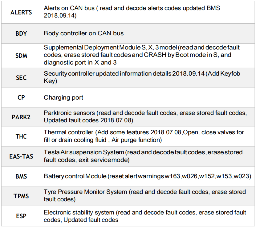 As so far, for TSLA PRO can work with ECU for TESLA Model S with some function for TESLA Model X and 3